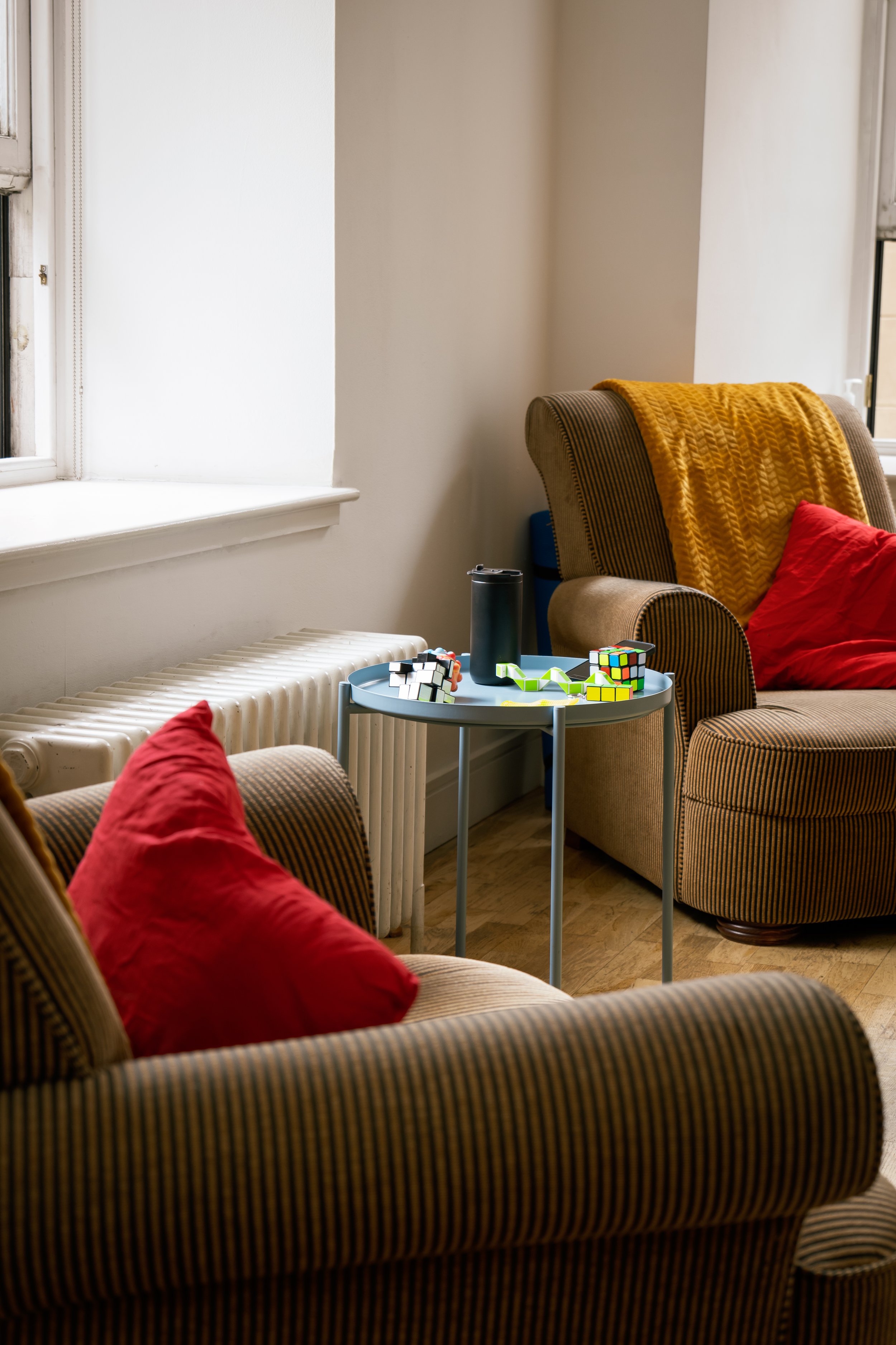 This space has soft lighting, low noise levels, fans and comfortable seating. There will be a range of resources available that you may find supportive, including ear defenders, stimming toys, colouring books, zines to read, books about DIY, and zine-making materials.